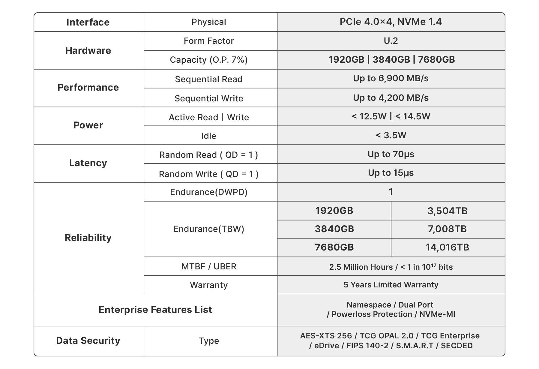 AES-XTS 256 / End-to-End / PLP / NVMe-MI